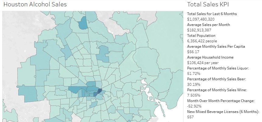 Explore the data for yourself and discover opportunities in your area with our interactive Houston Alcohol Sales Dashboard